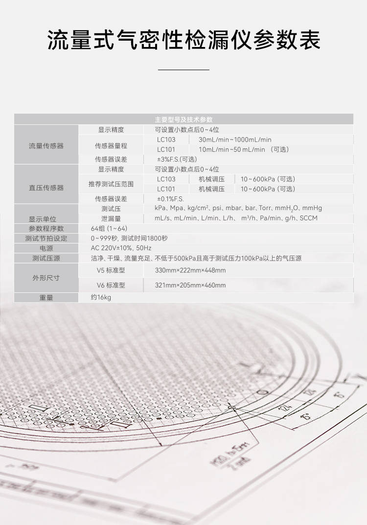 流量式气密性检漏仪通过向被测物(产品)内充入规定压力的压缩空气,并保持加压,通过测量流量传感器上流量的变化从而检测出被测物(产品)是否有泄漏以及泄漏流量的大小。首先检漏仪向被测物充入调压后的气体,并保持充气状态,通过采集高灵敏度流量传感器数据,感测出因泄漏导致的气体流量的变化,即被测物的泄漏流量。